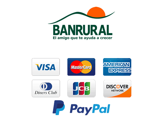 También aceptamos todas las Tarjetas de Crédito y Débito y PayPal.